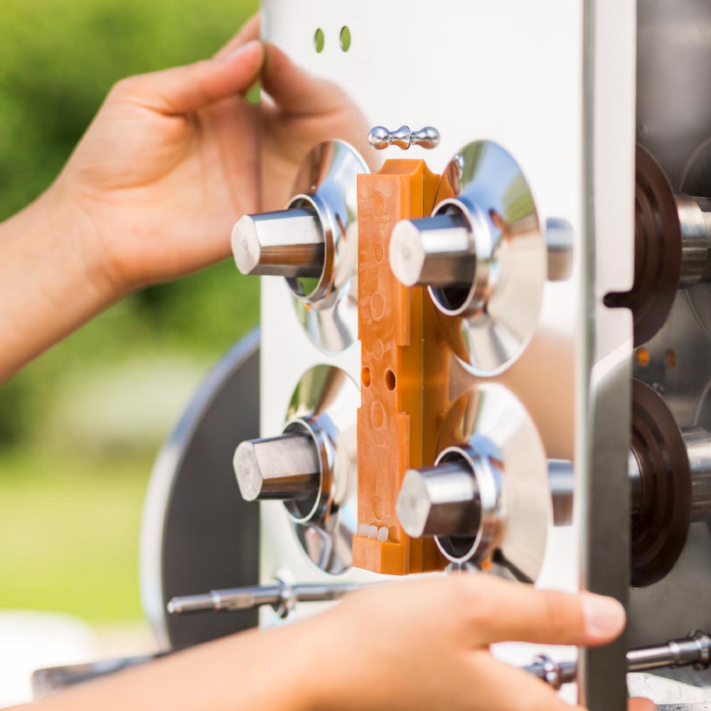 Бърз демонтаж и максимална експлоатационна надеждност. Патентованият напречен държач закрепва 7 крайни позиции само с един бързо освобождаващ се закопчалник. Инструментите за пресоване и рязане могат да бъдат свалени и монтирани отново за почистване за секунди.